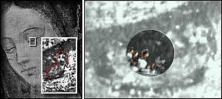 An enlarged digital photograph of the image in the eye of our Lady on the Tilma