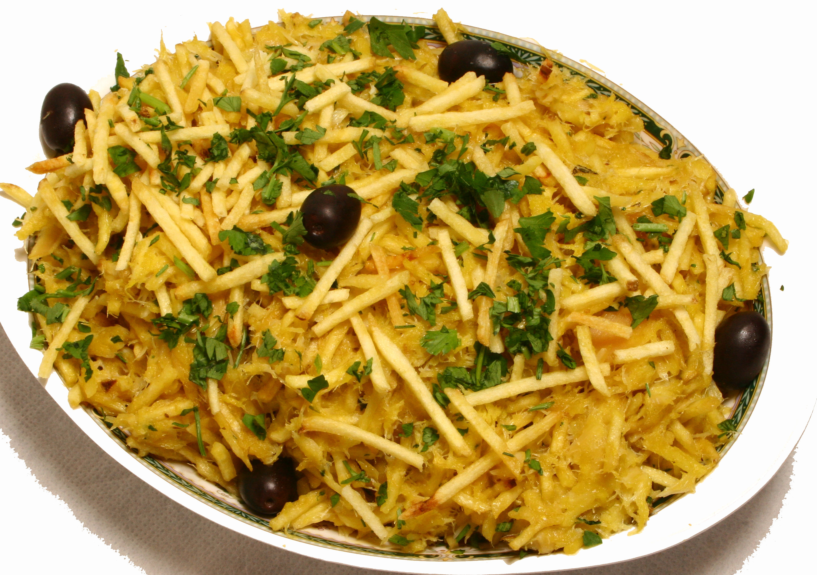 Here are a few ways Bacalhau gets served (a kind of cod fish, salted right after fishing for old-timey style conservation and it seems only the portuguese are allowed to eat this fish, for it is listed as endangered):